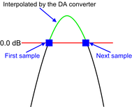 When digital audio is played the DA converter has to interpolate between the samples. So if your mix is right at the top, it might happen that the DA has to go over the maximum to regenerate the analog signal. The graphic below shows what happens in this case.